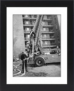 Product Description : Size: 14 x11 Framed Print14 x11 Framed Print, Black Satin Frame White Digital Mat. showing American firefighters in London WWII. American soldiers on duty with the London Fire Brigade practice British Fire Fighting techniques including climbing up steel turn table ladder. They can then use these skills when they return to civilian life in the United States. Chosen by Mary Evans. 14 x11 wooden frame with digital mat and RA4 print. Finished back including brown backing