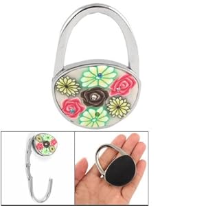 Product Description : Folding table hook, padlock shaped, decorated with multicolor rhinestones and flowers.Black rubber base used to prevent slipping or table scratches.Unfold the hook to hang handbag or purse nearby, keeps them clean and safe.Compact and portable, also can lock the hook with your handbag or purse serving as a decoration when not in use.