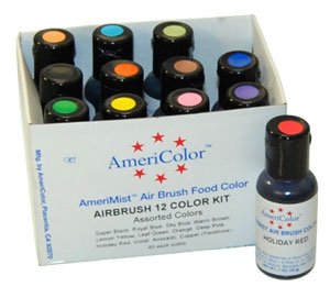 Product Description : AmeriMist air brush colors are super strength, highly concentrated spray-on air brush food colors that are extremely effective, even on the hard to color non-dairy whipped toppings and icings. Amerimist air brush colors eliminate the need to overspray so moisture will not accumulate, water spots will not appear, and the icing will not breakdown. Certified kosher by United States K of Los Angeles, California Rabbi Yehudah Bukspan, Supervisor