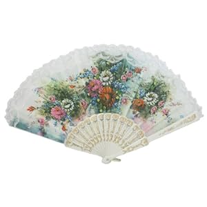 Product Description : This Folding Fan is constructed with plastic ribs and organza cloth, lightweight for convenient carrying in your handbag.Fashion and beautiful design with the glittery powdered covered colorful flower pattern and lace embellished rim.Nice gift for girls or lady use in the summer day or as a dancing hand fan.
