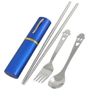Product Description : Features smiling face pattern, made from stainless steel. This dinnerware set including spoon, chopstick and fork for you to use. Great for daily dinner at office, restaurant or camping. Keep you healthy. Come with an aluminum holder case for holding them.