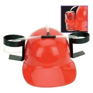 Category: Novelty & Gag Toys Vendor: Features 2 cradles on each side of the hat for your favorite canned beverages Tubes insert into can; release drink clamp with g Product Description